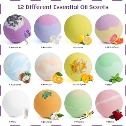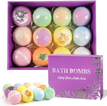 Bath Bombs Gift Set 12 PCS Bubble Bath Bombs Spa Bath Fizzy Balls Essential Oils Skin Moisturizing for Women Mother Wife Anniversary Birthday Gift