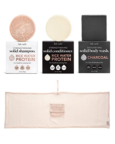 Kitsch Rice Shampoo & Conditioner Bar, XL Exfoliating Body Scrubber & Detoxifiying Charcoal Body Wash Bar with Discount
