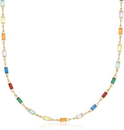 Barzel 18K Gold Plated Multi Stone Crystal Baguette Necklace for Women – Made In Brazil