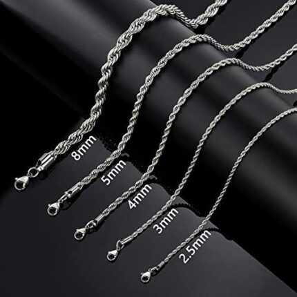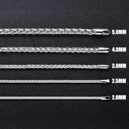 Fiusem Silver Tone Wheat Chain Necklace for Men, 2.5mm Mens Chain Necklaces, Stainless Steel Necklace Chains for Men and Women, Men Necklace 16-28 Inch