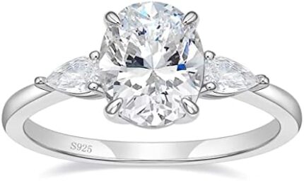 EAMTI 3CT 925 Sterling Silver Engagement Rings 3-Stone Oval Cut Cubic Zirconia CZ Wedding Promise Rings for Her Wedding Bands for Women Size 3-11