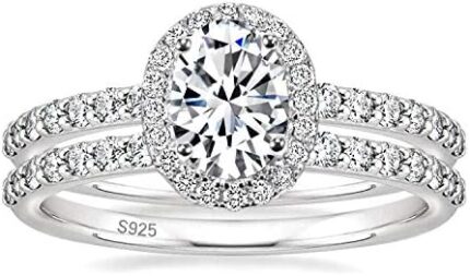 EAMTI 1.25CT 925 Sterling Silver Rings Round Halo CZ Engagement Rings for Women Cubic Zirconia Wedding Bands Promise Rings for Her