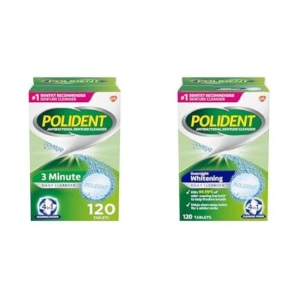 Polident 3 Minute Denture Cleanser Tablets – 120 Count & Overnight Whitening Denture Cleanser Tablets – 120 Count