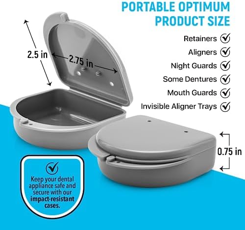 AIM DENTAL SUPPLY presents Retainer Cases with Vent Holes (Set of 2-Grey) KEY FEATURES:- – Safe & secure case for the dental retainers – Travel-friendly compact & lightweight design – Vent holes for proper airflow to make retainers fresh – No build-up of moisture, odor, and germs – Easily fits into your purse, backpack, or toiletry bag – Made of durable BPA-free materials in the USA The case is not limited to retainers only. It can also be used to store aligners, night guards, or other dental appliances, providing a versatile storage solution. By using the retainer case, you can ensure that your dental retainers are protected from damage, keeping them in pristine condition for a longer lifespan. The case is equipped with a reliable hinge that allows for easy opening and closing. You can quickly access your retainers whenever you need them. Invest in the Retainer Case to keep your dental retainers safe, clean, and conveniently accessible. It offers a durable and stylish solution for storing and transporting your valuable dental appliances. CARE INSTRUCTIONS:- It is a dishwasher-safe product for quick and easy cleaning. Place in the dishwasher regularly to make sure your retainer cases stay squeaky clean. And since it comes in 10 retainers, you can always use one while the other ones have been gone to be cleaned.