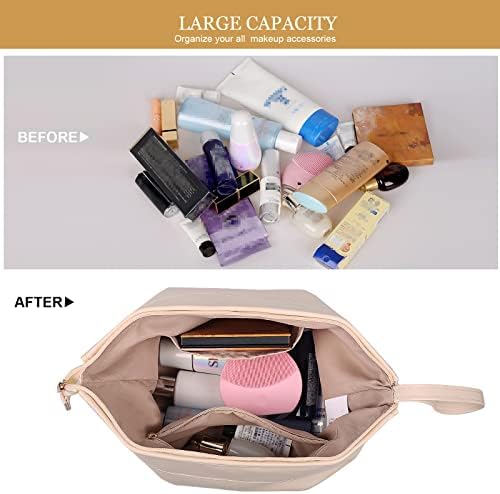 Abiudeng Large Makeup Bag,Double Layer Cosmetic Bag,Travel Makeup Bag,Leather Makeup Bag, Cosmetic Travel Bags,Portable Leather Toiletry Bag,Roomy Cosmetic Bag for Women and Girls