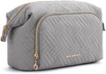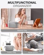Measures 8.2 x 4 x 6.7 inch. Makup pouch for purse brings greater convenience.The spacious large makeup pouch can hold your full-sized cosmetics, make up tools, toiletries, skin care products and travel essentials.