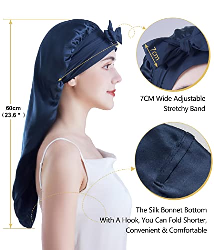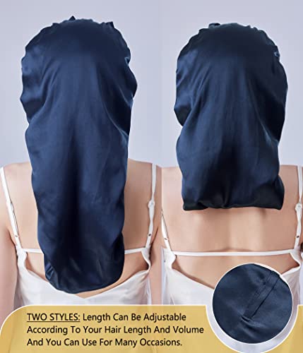EXTRA LARGE BONNET and MORE COMFORTABLE: Length of this silk bonnet for curly hair:60cm/23.6inchs, width:28cm/11inchs, suitable for various women.No matter how thick your hair,Custom design Great for long natural hair,dreadlocks, braids,curly hair, frizzy hair and women with long extensions. Should be a perfect fit.