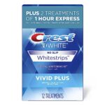 Want a whiter smile at home? Choose Crest 3DWhitestrips from the #1 dentist-recommended at-home teeth whitening brand and get 100% noticeably whiter teeth, guaranteed. Achieve a brighter, whiter smile in just 12 days with Crest 3DWhitestrips Vivid Plus. This offering features 30-minute teeth whitening treatment makes it easy to whiten teeth without leaving the house and also comes with 2 bonus 1 Hour Express treatments for fast results. Plus, the Advanced Seal Technology�s comfortable, no-slip grip stays put, so you can talk and drink water and chat with friends even while whitening your teeth. Simply apply Crest 3DWhitestrips Vivid Plus for 30 minutes a day for 8 levels whiter teeth. This pack includes 24 teeth whitening strips, 12 for your top teeth and 12 for your bottom teeth, to be used over the course of 12 days.