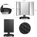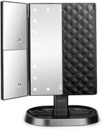 【 TOUCH CONTROL & TRI-FOLD DESIGN 】- This vanity mirror features a high-sensitivity touch button design. LED lights brightness control by the touch sensor switch, and just touch the sensor switch to dim or bright the LED lights. Tri-fold design allows you to open or close at your will and it’s also dustproof and anti-scratch. Convenient for daily maintenance and carry-on.