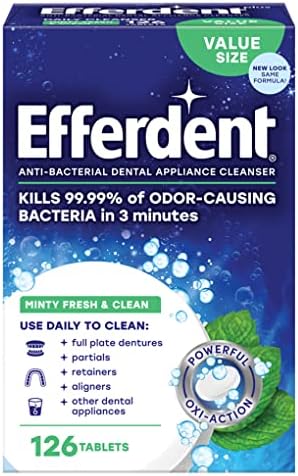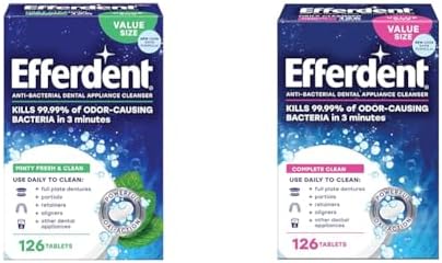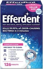 Product 2: Use Efferdent retainer cleaner tablets daily to clean retainers, full-plate dentures, partials, aligners and other dental appliances