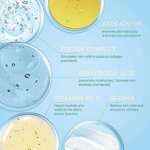 Even Out Skintone: Get ready to face the day! Use our retinol and collagen face cream as a lightweight makeup base to protect your skin and even out dark spots and blemishes.