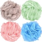 Home Shop Bath and Body Fu Store Bath Sponges Shower Loofahs 70g Mesh Balls Sponge 4 Solid Colors for Body Wash Bathroom Men Women – 4 Pack Scrubber Cleaning Loofah Bathing Accessories
