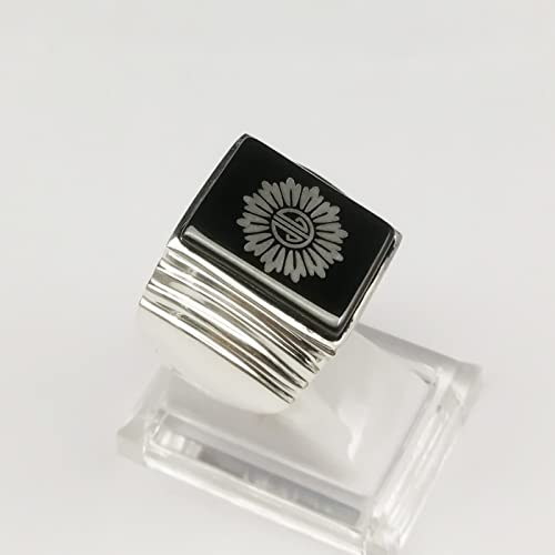The ring table size is: 20MM * 16.5MM (the location of the onyx stone inlay), It’s a great souvenir ring and worth collecting.Please refer to the size chart to choose the right size. If you have any questions, please contact us. Non-tarnish silver ring with white gold plating.