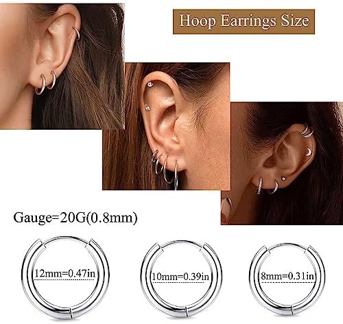 20G Surgical Stainless Steel Stud and Hoop Earrings
