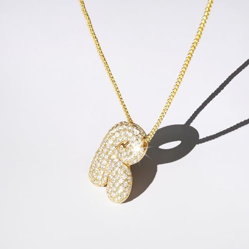 41ClJlPh4iL. AC KissYan Bubble Letter Necklace, 14K Gold Plated Balloon Initial Pendant Box Chain Necklace Dainty Pave CZ Jewelry Gift for Women