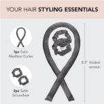 NO MORE HEAT DAMAGE: Avoid the heat damage with this perfect alternative to traditional hot rollers hair curlers. This set includes a curling rod and two satin sleep scrunchies, all covered in high-quality, silky satin fabric.