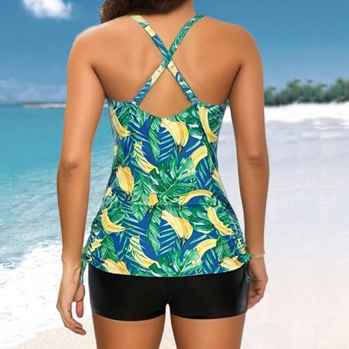 LEHOZIHEQ 2 Piece Tankini Swimsuits for Women Modest Tankini Top with Shorts Bottom Tummy Control Bathing Suit