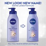 Includes one (1) 16.9 fluid ounce bottle of NIVEA Shea Nourish Body Lotion for Dry Skin