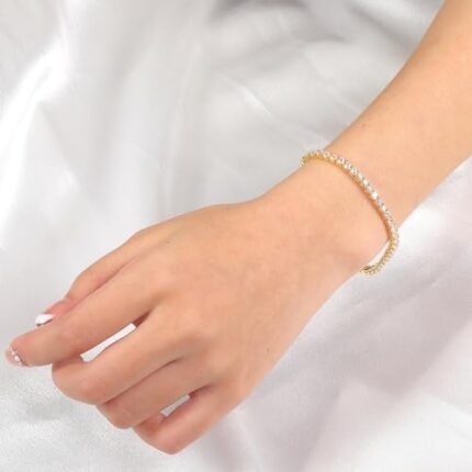Tennis Bracelet for Women|3MM Cubic Zirconia|White/Yellow Gold Plated Bracelets|4-Prong-Setting CZ|Size 6.5-8.5 Inch