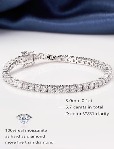 IMOLOVE Moissanite Tennis Bracelet for Women Sterling Silver Wedding Bracelets for Brides Stacking Dainty Bracelets with 18K White Gold Plated