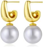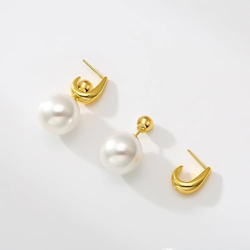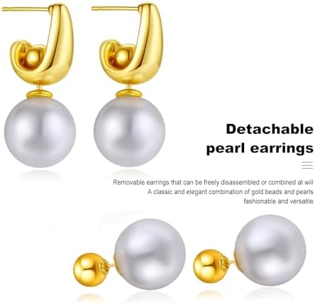 41yU674HjCL. AC PICKBEAU Fashion Letter D Gold Silver Hoop Earrings for Women Pearl Stud Earring, 2-Way Wearing Pearl Earring Studs Luxury D-Shape Huggie Drop Light Jewelry Gifts