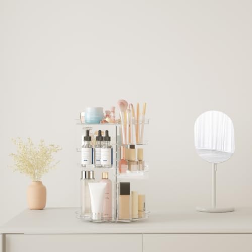 51XO uGocvL Rotating Makeup Organizer, DIY 8 Adjustable Layers Spinning Skincare Organizer, Cosmetic Display Case with Brush Holder Perfume Tray, Multi-Function Storage Carousel for Vanity Bathroom Countertop