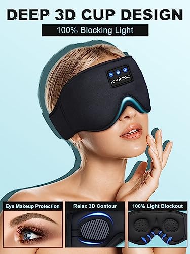 LC-dolida Sleep Headphones, 3D Sleep Mask Bluetooth Wireless Music Eye Mask, Sleeping Headphones for Side Sleepers Sleep Mask with Bluetooth Headphones Ultra-Thin Stereo Speakers Perfect for Sleeping