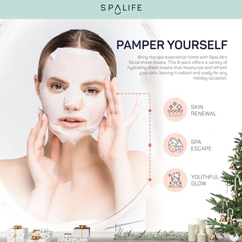 SHEET MASK VARIETY: Our 9-pack of SpaLife sheet masks, each offering a unique blend of ingredients to cater to your skin’s needs. From hydrating to revitalizing, these masks have you covered.
