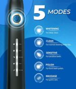 5 High-performance Modes- Electric toothbrush for adults & kids supports 5 modes based on your specific needs: 𝐖𝐡𝐢𝐭𝐞𝐧𝐢𝐧𝐠, 𝐂𝐥𝐞𝐚𝐧𝐢𝐧𝐠, 𝐬𝐞𝐧𝐬𝐢𝐭𝐢𝐯𝐞, 𝐩𝐨𝐥𝐢𝐬𝐡𝐢𝐧𝐠, 𝐦𝐚𝐬𝐬𝐚𝐠𝐞. 𝐖𝐡𝐢𝐭𝐞𝐧𝐢𝐧𝐠 mode vibrates 40,000 strokes per minute to break the stains. 𝐂𝐥𝐞𝐚𝐧 𝐦𝐨𝐝𝐞 goes deep into the inter dental, removes the dirt hidden in the periodontal. While 𝐦𝐚𝐬𝐬𝐚𝐠𝐞 ssage mode offers a gentle massage of gums.