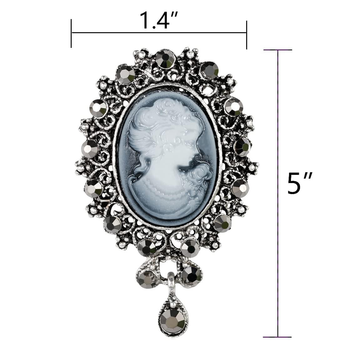 Package include: 1pc gray rhinestone cameo brooch pin. Please be careful for the pin of the brooch. For you to have a satisfied purchase experience, kindly contact us if you have any question, we will reply to you as soon as possible.