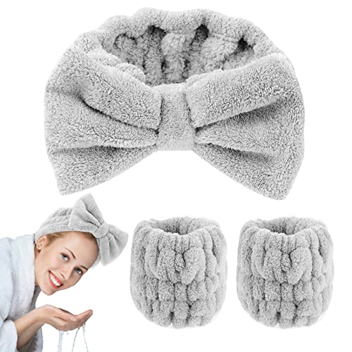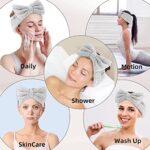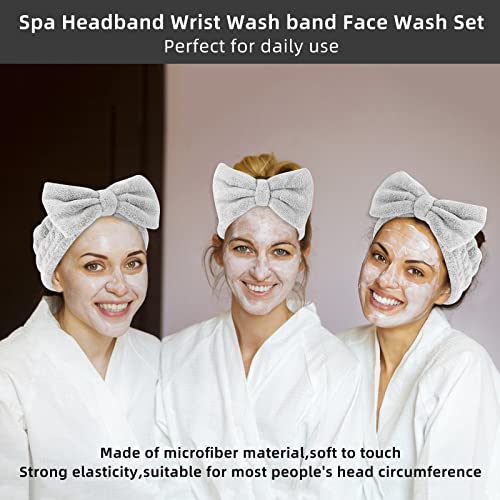 WLLHYF 3 Pcs Spa Headband Wrist Washband Set Soft Elastic Spa Facial Makeup Headbands Washing Face Towel Wristbands Prevent Water Spilling Down Arms Spa Headband for Women Girls Washing Face Shower