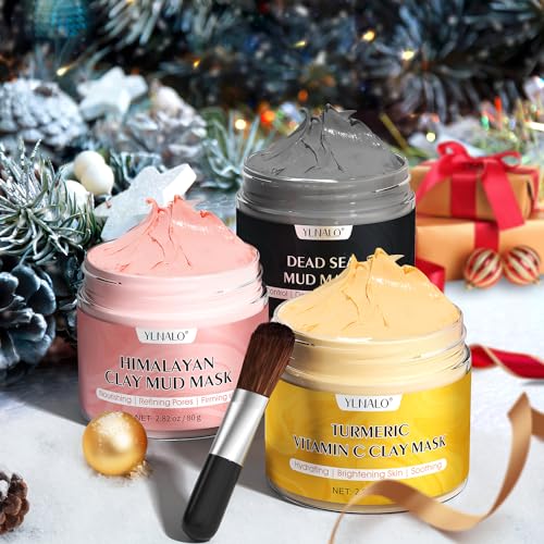 Ylnalo Mask Set Turmeric Vitamin c Clay Mask, Dead Sea Mud Mask, Himalayan Clay Mask Deep Cleansing, Reduce Acne Dark Spots, Radiant Skin, Oil Control