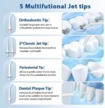 【What’s Included】Enjoy everything you need for a comprehensive oral care routine – 1×Water Dental Flosser, 5×Replacement Tips, 1×User Manual, and 1×Charging Cable (Adapter not included). With our high-quality water dental flosser, achieve a brighter smile and healthier gums!